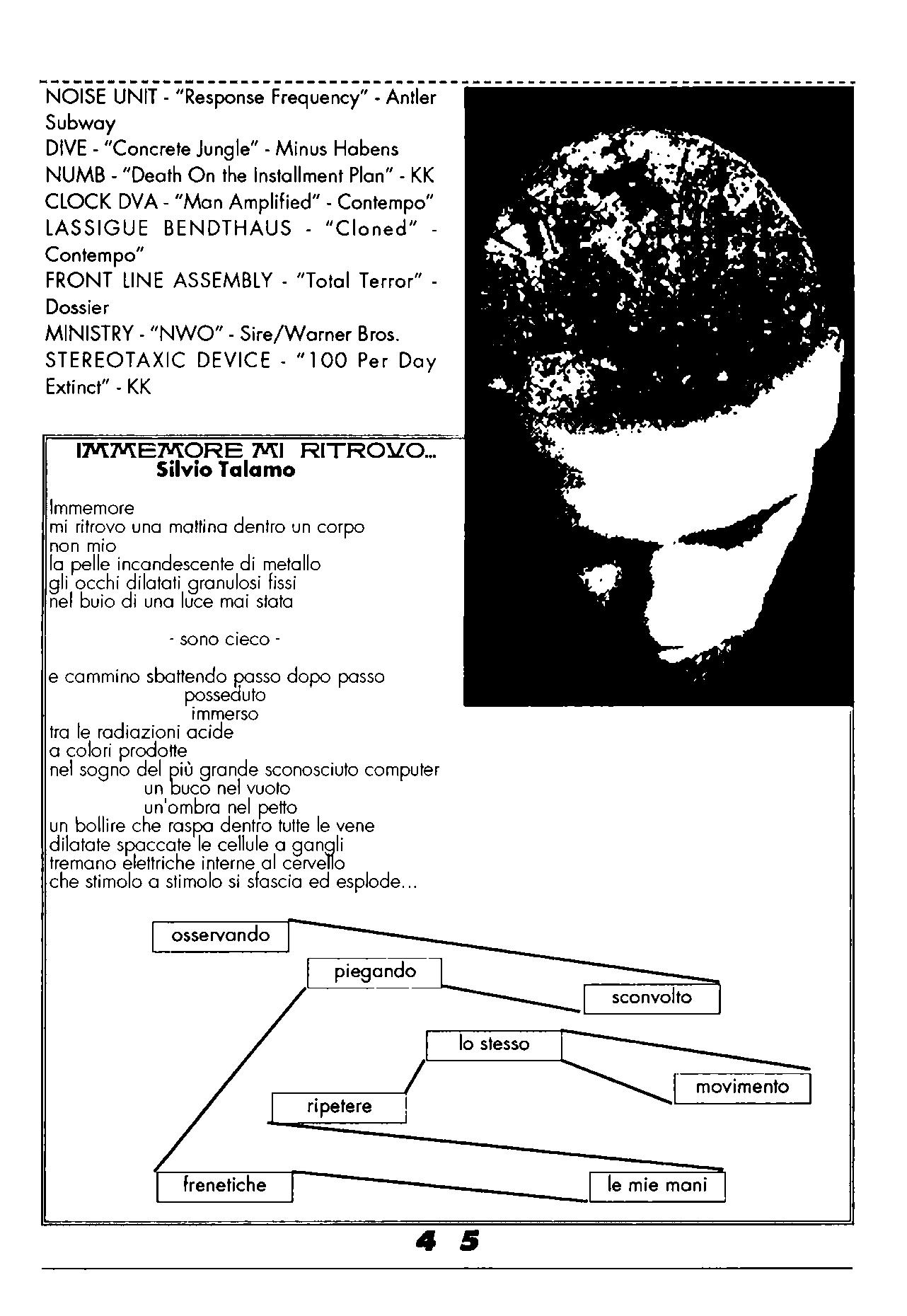 ** Codici Immaginari era una rivista legata al Cyber Punk e ad una riflessione critica sulla dimensione della tecnologia intesa, per quanto mi riguarda, sia come controllo, invasione che come arma di liberazione, emancipazione. Molte di quelle riflessioni ed esperienze umane, intellettuali, cerebrali, artistiche, fisiche che furono sviluppate in quegli anni sarebbero diventate temi attuali. Come sempre, destino simile a molti dei miei scritti, quella poesia non la ricordavo e non so se l’avessi neanche più. Era passato troppo tempo ma da internet è riemerso un archivio. E’ quasi una preistoria! Buona lettura.